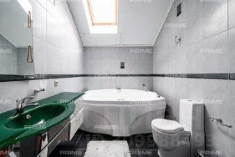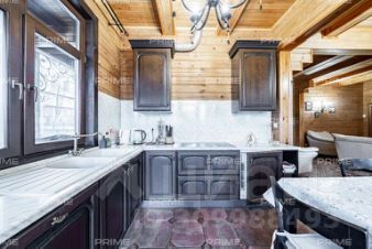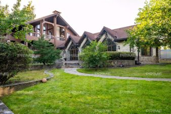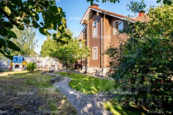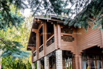 Крыша дома покрыта керамической черепицей, а мансардные окна открывают живописные виды на окружающую природу. Стены выполнены из клееного бруса 18х15 см и кирпича, отделанного натуральным камнем, что придает дому благородный и изысканный вид, а также обеспечивает надежность и долговечность.