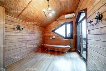 Второй дом на участке, площадью 278 кв. м, включает в себя гараж на две машины и цокольный этаж. Первый этаж состоит из просторной кухни, столовой с выходом на улицу, трех комнат и санузла. Все полы в этом доме с подогревом, а отделка выполнена из качественных материалов. На втором этаже - холл с выходом на балкон, три спальни и санузел, с мансардными окнами и дубовой паркетной доской на полу.