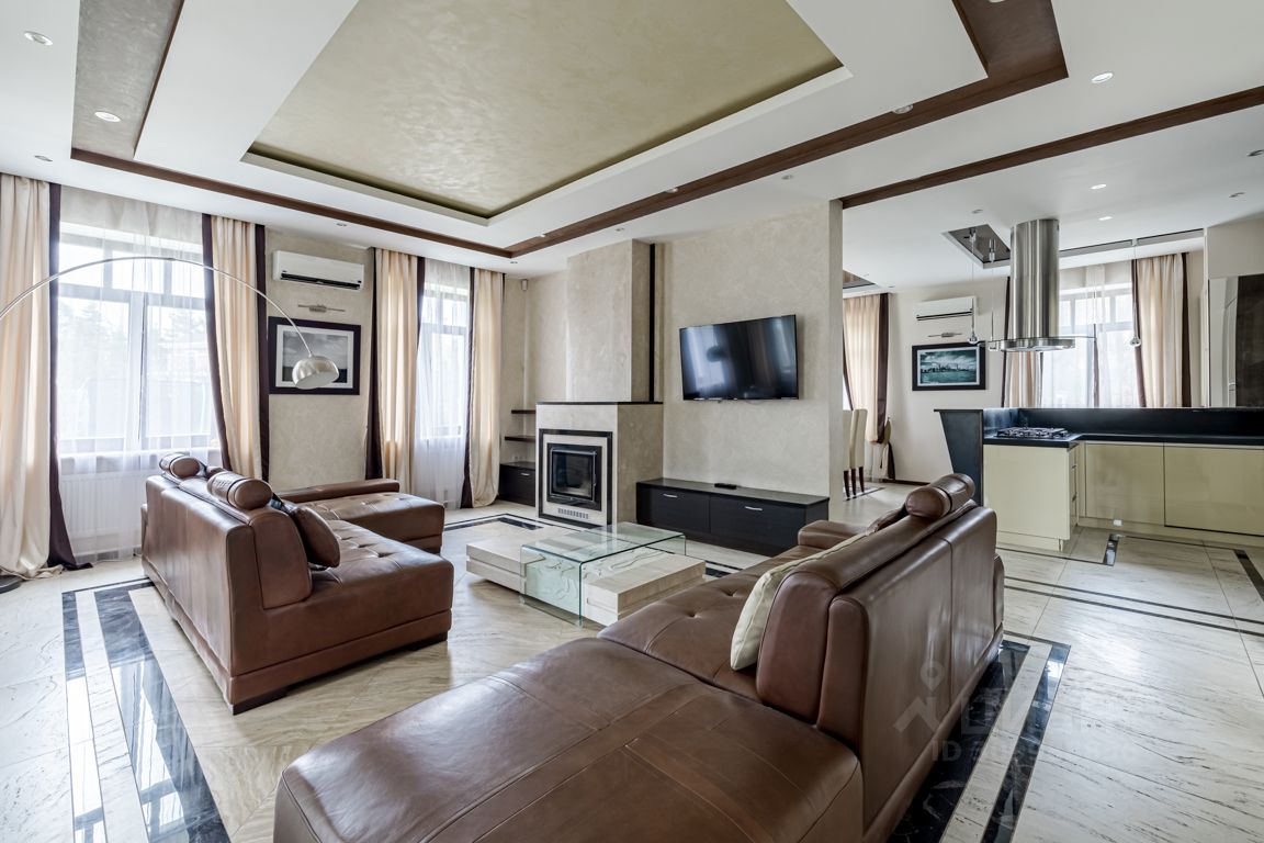 2 этаж: мастер-спальня с ванной комнатой и гардеробной, 2 детские спальни, кабинет, с/у.