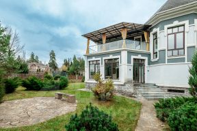 На прилесном участке выполнен ЛАНДШАФТНЫЙ ДИЗАЙН, растут крупномеры и кустарники, выстелен газон, выложены дорожки из брусчатки, установлены подсветка и система полива.