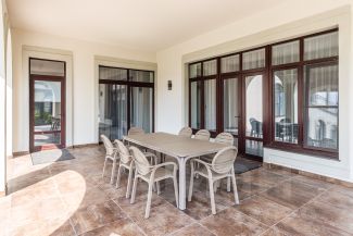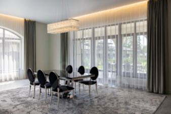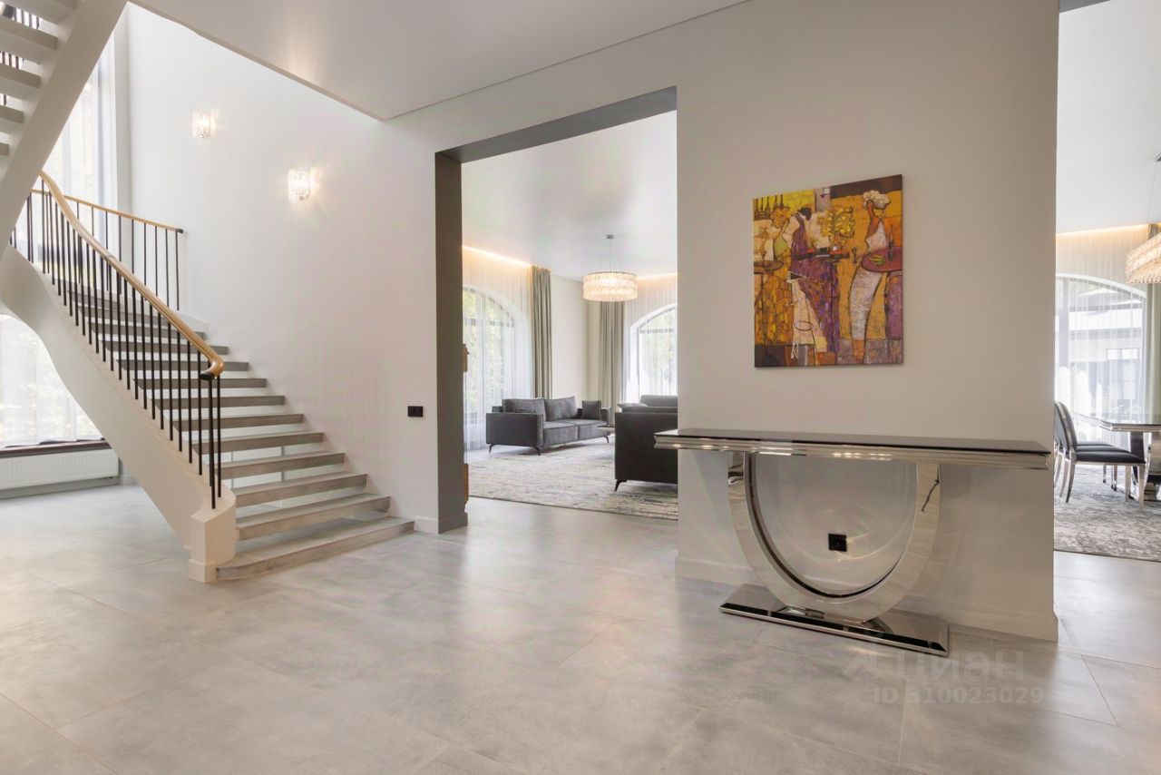 Дом площадью 1327 кв.м под ключ с мебелью, с отдельным гаражом на три машины с оборудованной мойкой. Второй этаж дополнен двухкомнатной квартирой для персонала. Дом оборудован приточно-вытяжной вентиляцией и кондиционированием. Котельная с немецкими котлом Viessmann, и системой очистки воды. На участке проведены ландшафтные и дренажные работы, система автоматического полива, по периметру высажены туи.