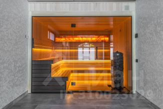1-ый уровень: холл, просторная гостиная с камином на 2 стороны, с/у, столовая, открытая кухня, выход на террасу 20 м с зоной барбекю, кабинет, гостевая спальня, переливной бассейн 15х5 м., сауна с зоной отдыха и тренажерном залом, с/у;