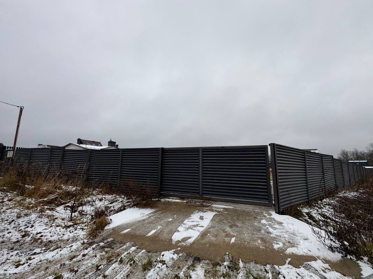 - Забор-жалюзи с откатными воротами обеспечит безопасность и комфорт.