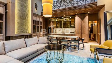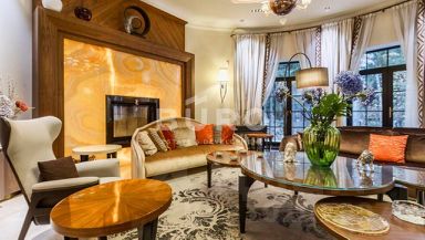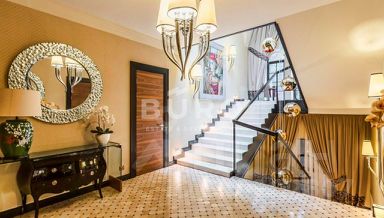 Внутри дома выполнена превосходная отделка из премиальных материалов: ценных пород дерева и натурального камня. Стены и полы в санузлах выложены мозаичной плиткой. Установлена сантехника ведущих производителей.