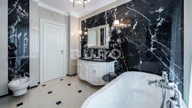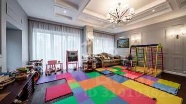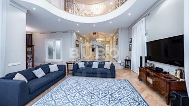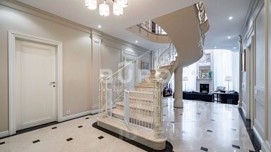 Роскошный дом возведен из высококачественных материалов для самой комфортной жизни на природе вблизи Столицы. Фасад с колоннами декорирован камнем. Великолепный интерьер в неоклассическом стиле исполнен в спокойных, светлых тонах и дополнен стильной мебелью. Санузлы укомплектованы премиальной сантехникой. Огромная площадь остекления, второй свет и высокие потолки делают дом невероятно светлым и просторным.