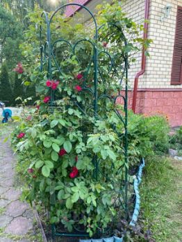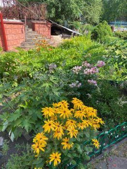 Сам участок очень красивый и ухоженный. А делает его таким множество цветов, декоративных кустарников и деревьев. При этом есть и яблони и кусты черной смородины.