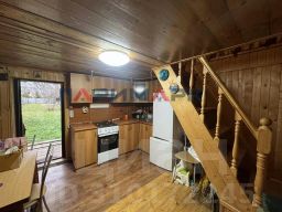 Также на участке имеется бревенчатая баня, которая используется как летний домик. На 1-м этаже кухня, душевая и комната. На 2-м этаже большая комната.
