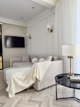 Гостиная с кухней , прихожая , большой санузел, бойлерная-постирочная .