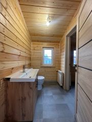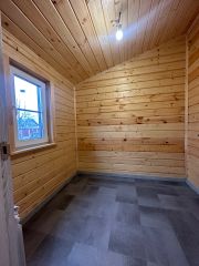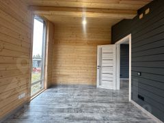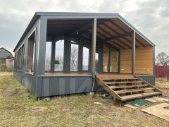 Дом общей площадью 104 кв.м., установлен на свайно-винтовой фундамент (полностью обвязан профилем), с просторной крытой верандой, отделанной террасной доской. Дом построен из леса камерной сушки, по современной каркасной технологии для круглогодичного проживания. Каркас обработан огне-биозащитой. Лаги пола каждые 40 см., что дает основанию пола повышенную жесткость. Выполнено двух слойное утепление Технониколь, в шахматном порядке (стены 150мм, потолок и пол 200мм). Установлена оцинкованная сетка от грызунов под полом.