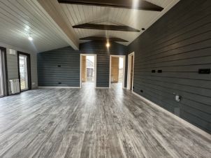 Основание пола 22мм фанера, водостойкий ламинат 8мм, в котельной и санузле ПВХ плитка. Подогрев пола и система батарей на жидкостном носителе. Девять контуров отопления. Выполнена гидроизоляция зоны прихожей, котельной и санузла. Все стены, потолок и терраса покрашены в два слоя премиальными материалами. Качественные, панорамные окна от REHAU, стеклопакет мультиплекс энергосберегающий - не пропускает ультрафиолет и дает бликовый эффект снаружи. Все электрические элементы ABB и Schneider. Котел с возможностью дистанционного управления с телефона Termex с запасом мощности 60%. Так же проведены закладные под установку Кондиционеров и клапана для вентиляции и проветривания.