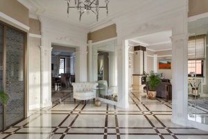 Этаж 2: Хозяйская спальня с туалетной комнатой и гардеробной, детская спальня, две спальни с гардеробными, ванная комната с душевой кабиной.