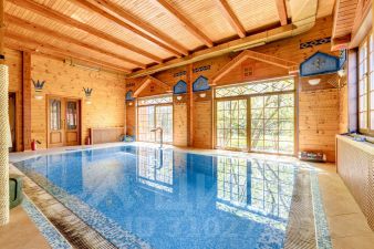 Этаж 1: Кухня-гостиная, бассейн (7*4м2) с противотоком и водопадом, с сауной и спортивной зоной, гардеробная, 2 с/у.