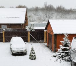 На участке расположен гараж размером 4,5*7 (м), внутри отделан стеновыми панелями, на полу плитка, проведен свет. Парковка вмещает 4 машины. Ворота автоматические.