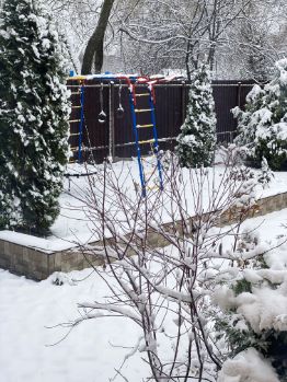 Взрослые плодовые деревья и кустарники: яблоня, груши, черешни, вишни, слива, смородина, малина, жимолость, клубника.