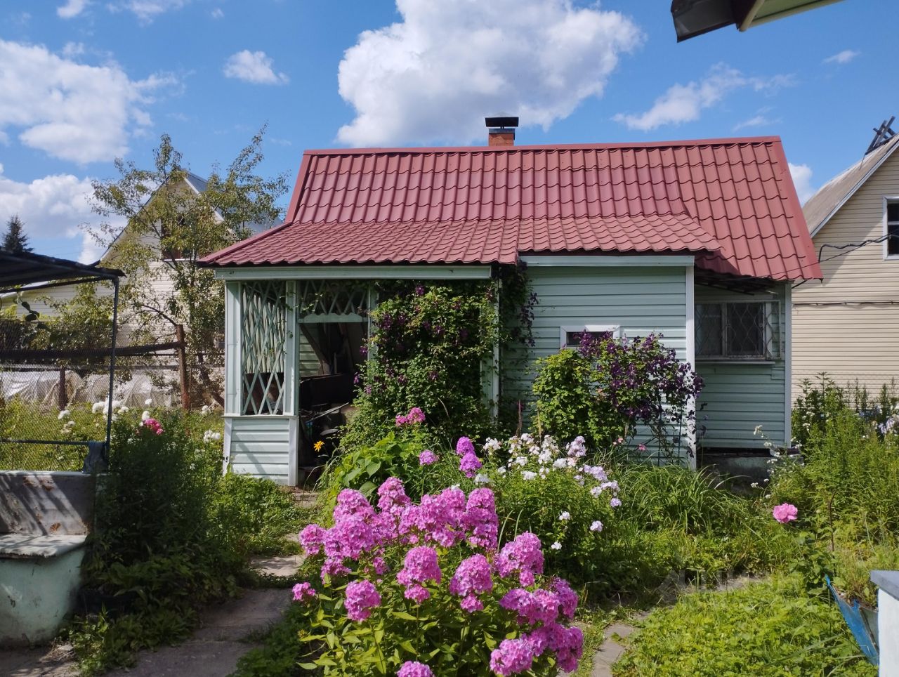 Имеется большой сарай с чердаком, теплица + хозяйственная постройка с дровником (полностью заполнен сухими дровами) и туалетом. На участке колодец (8 колец) с чистой питьевой водой, вода из колодца заведена в дом в душевую.