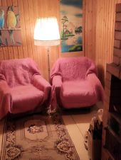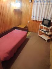 Дом деревянный, каркасный утепленный 6х7 м на ленточном фундаменте, отделан сайдингом, пластиковые стеклопакеты, крыша металлочерепица, 1 этаж + мансарда, электричество 3 фазы заведены в дом, вода из колодца заведена в дом, электрический водонагреватель и душ. На 1-м этаже: прихожая, душевая, гостиная, кухня и 2 комнаты. На 2 мансардном этаже большая комната.