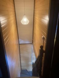 Село Ильинское, М.О. Дмитровский р-н. Деревянный, добротный, очень теплый Дом-шале 120кв.м (6,0*10,0*2эт) 2020г.п. 1эт: Крыльцо, прихожая, зал-студия 18м, с/у с ванной, баня (сауна) с комнатой отдыха и с/у с душем, и с выходом прямо из Зала на большую крытую террасу 18м. 2эт: три спальни, с выходом из хозяйской спальни на красивый видовой балкон 10кв.м. Интернет, НТВ+. Фундамент - ж/б сваи, (есть подпол). Уч-к 3,5 сотки, стоянка на 2-3а/м, красивый забор с подсветкой, отьездные электроворота, зона мангала (с большим мангалом), небольшая ухоженная зеленая зона с газоном и посадками и выходом на свою детско-спортивную площадку на 5-6 домов. Отопление электрическое, 30кВт (380), ГАЗ - прямо по участку, вода везде питьевая (химочистка!). Испанская плитка и мрамор + ламинат (все с подогревом!), все и окна и двери - качественные цветные (венге) стеклопакеты, натяжные потолки. Вокруг очень развитая инфраструктура. Подъезд - везде асфальт, освещение и видеонаблюдение. Красивые виды на склон горнолыжного курорта Сорочаны, на пойму реки Яхрома и грибной лес!, пляж Сорочаны - в 600м, р.Яхрома - 200м, г.Дмитров - 8км, ж/д станция Яхрома - 6км, Пятерочка, Вкус-вилл, прод.рынок - 400м, рядом парк-клуб X-Land и Свежий ветер, красивый Храм - 300м, автобус. Вокруг хорошие соседи, и на территории также еще есть (по желанию!) свои помощники по хозяйству (чистка снега, газоны, электрика, сантехника, технические работы). Дом под ключ, полностью меблирован, обставлен всей бытовой техникой и аппаратурой. Продаю. Собственник (Павел).