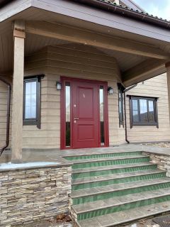 Стены дома выполнены из клеёного широкоформатного бруса , неподверженного появлению трещин и геометрических деформаций в процессе эксплуатации дома,