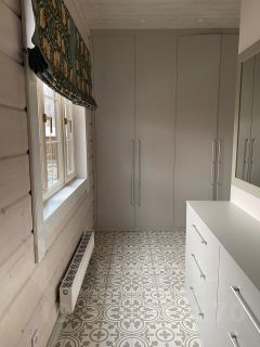 Просторный первый этаж: гостиная, столовая- кухня, спальня, санузел с душевой и сауной, вместительная прихожая, второй санузел и отдельная постирочно- гладильная комната.