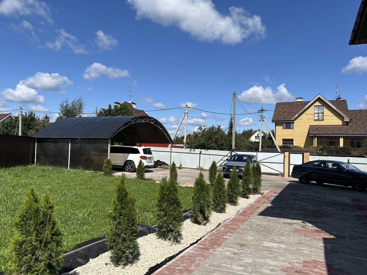 Земельный участок 11,41 сотка, огорожен забором со всех сторон. На участке оформлена въездная группа на несколько машин, есть парковка под навесом. Установлены откатные ворота. Подъезд к участку - асфальт. Соседи проживают постоянно. Обслуживание подъездных дорог круглогодичное.