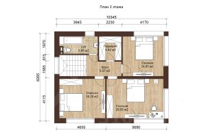 2 й этаж: 3 комнаты, общий санузел и гардеробная