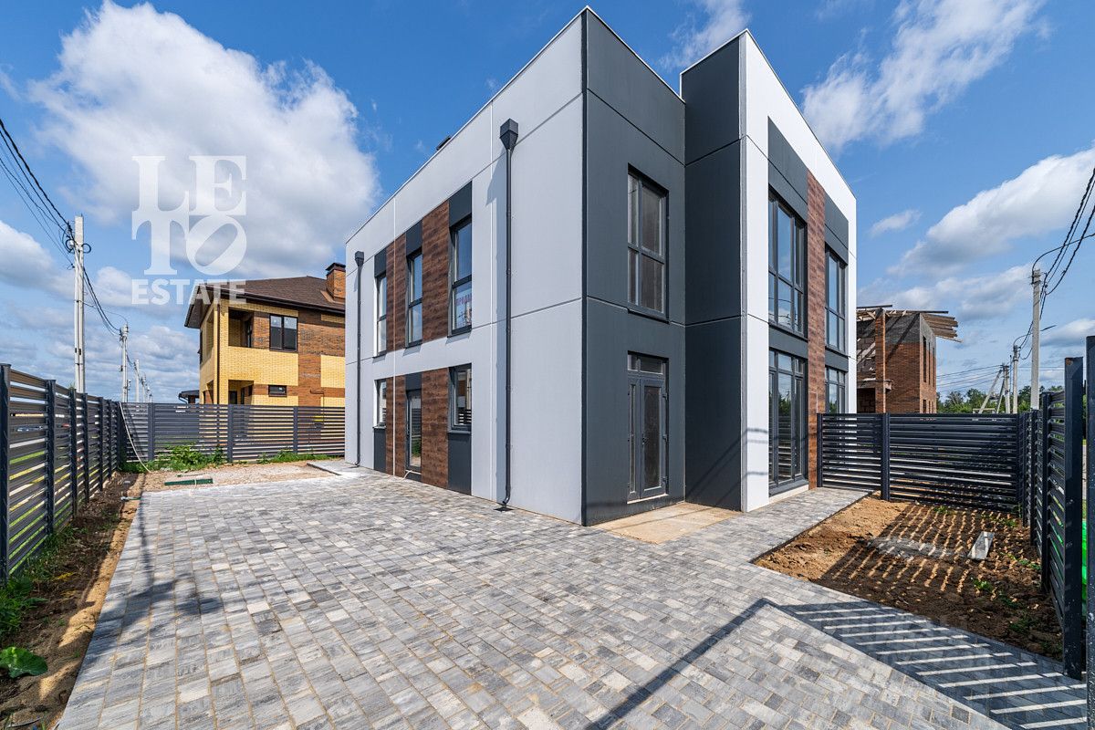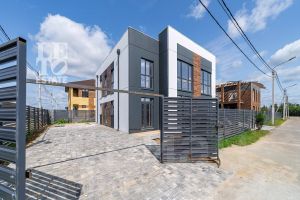 Архитектурная задумка этого дома, сочетает в себе традиционное понятие комфорта в современном дизайнерском решении. Двухэтажные секции с просторной гостиной, 4 спальнями, 3 санузлами, гардеробными. Панорамные окна добавляют простора и дневного света в помещения. В секциях возможен широкий выбор планировочных решений, оптимизированных в соответствии с личными пожеланиями. Центральные коммуникации: электроснабжение и газоснабжение. Канализация - септик, водопровод - скважина.