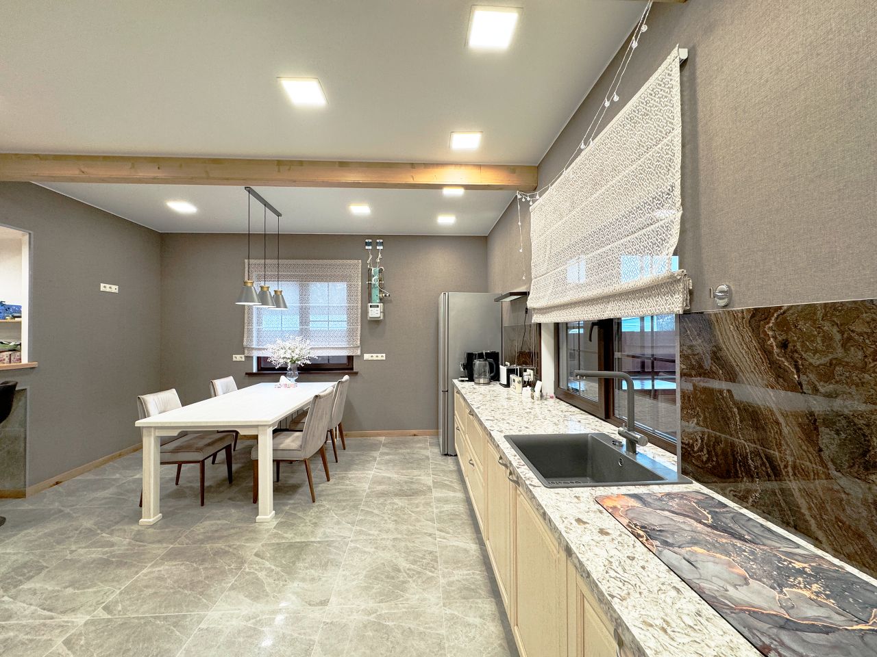У дома есть отдельный собственный вход со всеми коммуникациями, кухней, спальней, санузлом и ванной комнатой, который станет идеальным решением для размещения гостей или проживания обслуживающего персонала. Кухня с мебелью и техникой остаётся новым собственникам. Терраса с остеклёнными раздвижными окнами. В дом заведен интернет через оптоволокно, что обеспечивает высокую скорость подключения и стабильное соединение. Вход на цокольный этаж из дома и через отдельную широкую дверь.