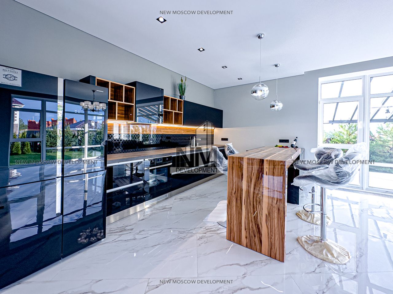 Для внутренней отделки дома использовались дорогостоящие натуральные материалы - мрамор, керамическая плитка, гипс. Установлена современная кухонная мебель Giulia Novars | Элитные кухни, гарнитур немецкого бренда.