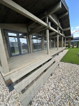 - фундамент - ж/б забивные сваи с обвязкой из СИБИРСКОЙ ЛИСТВЕННИЦЫ