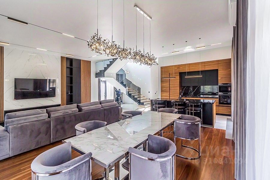 Новый коттедж с дизайнерским ремонтом под ключ! Дом построен с использованием премиальных материалов и оснащён современными инженерными системами. Просторное патио, терраса на крыше, трековое освещение, кухня с техникой Miele. В пешей доступности — набережная реки Беляны.