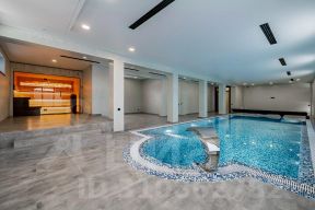 1 этаж: холл, гостиная-столовая с КАМИНОМ и выходом на ТЕРРАСУ, кухня, спальня с с/у и гардеробной, кабинет, гостевой с/у-постирочная, гардеробная, СПА-зона (БАССЕЙН 15 метров, сауна, зона отдыха, спортзал).