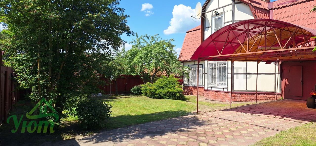 Периметр участка огорожен забором из профлиста. Есть подсветка придомовой территории, автоматические ворота, стоянка под навесом на 2 авто, хоз блок. Участок ухоженный, аккуратный , высажен газон, много цветов, кустарников, плодовых и хвойных деревьев. Дорожки вокруг дома выложены тротуарной плиткой.