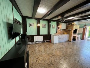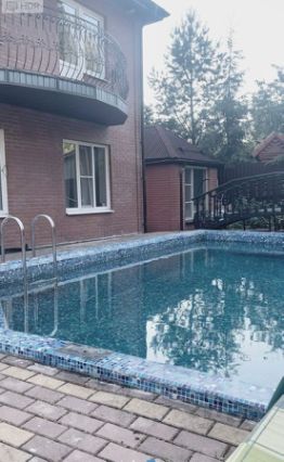 ОН 22423. Загородный Дом - усадьба, расположенный в Истринском районе, в 35 км от МКАД по Новорижскому шоссе. Участок находится в уникальном месте - первая линия от огромного лесного хвойного массива (30 га), в пешей доступности большое цветочное поле с протекающей речкой - Истра, в 15 минутах езды от дома - Истринское водохранилище. Дом кирпичный, два этажа, на бетонной шведской плите 70 см, крыша- металлочерепица, перекрытия бетон, 3 спальни, два балкона-ковка. В доме новый дизайнерский ремонт, теплый пол: первый этаж - керамогранит, второй этаж- деревянный паркет. А также на участке имеется: 1. Дом гостевой - деревянный сруб в два, с баней, душевой, санузлом 4. Домик для прислуги с панорамным окном, душевой, санузллом. 2. Гараж, теплый, с подогревом пола; 3.Беседка - барбекю, зимний вариант с теплым полом, печь барбекю. На территории - газ, септик, скважина 90 метров, уличный бетонный бассейн с системой фильтрации и очистки, спортивная площадка с инвентарем, видеоконтроль, проводной интернет, плодовые и декоративные деревья, ландшафтный дизайн, фонари, дорожки выложены английской брусчаткой, газон.