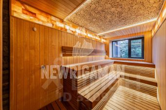 1 этаж - холл, кухня-столовая- гостиная, котельная, гостевая спальня, с/у, квартира персонала, зона спа с душевой, сауной и выходом на участок, с/у, постирочная, гардеробная, котельная, гараж на 2 машиноместа,