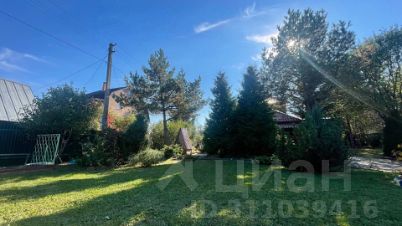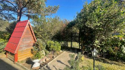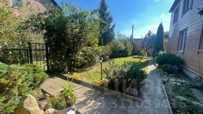 Ровный, облагороженный и благоустроенный участок огорожен забором, имеются ворота и калитки. Оборудовано парковочное место на 2 автомобиля. На участке есть плодовые деревья, туи, декоративные ели, клумбы с цветами, мощеные плиткой дорожки и просторная лужайка с площадкой для барбекю.