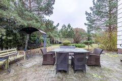 Участок с ландшафтным решением. На участке есть беседка, зона барбекю, отдельно построен хозяйственный домик под садовую технику с крытой парковкой для машин.