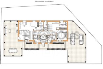1 этаж: прихожая, холл, кухня-столовая с кладовой, гостиная с выходом на террасу, мастер спальня с ванной комнатой и гардеробной, кабинет, санузел, постирочная, котельная.
