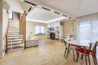Продается дом (дуплекс) в коттеджном поселке Марсель. Прописка Москва. Дом расположен в обжитой части поселка. Ремонт выполнен из качественных гипоаллергенных материалов. Материал стен - теплая керамика и облицовочный фасадный кирпич. Все центральные коммуникации: вода, свет, газ, канализация, ливневая канализация. Теплые водяные полы во всех помещениях на первом и на втором этаже. В доме 4 спальни (1 на первом этаже и 3 на втором). В мастер-спальне индивидуальный санузел и гардеробная. Всего 3 санузла (на первом этаже, на втором этаже и на втором этаже в мастер-спальне). Лестница бетонная, отделана дубом. Дровяной камин производства Германия. Кровля скатная металлочерепица, окна заменены на двухкамерные стеклопакеты Deceuninck, краска моющаяся Little Greene, подогрев полов первый и второй этаж, плитка на полу первый и второй этаж, межкомнатные двери Dorian, шпон дуба. Сантехника, раковины, унитазы, биде, ванна Villeroy Boch, смесители Hansgrohe. Свободная продажа. Ипотека возможна. Помощь в одобрении.