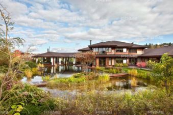 Домовладение площадью 1265 кв.м, гармонично вписанное в зеленую территорию в 100,34 соток в поселке "Бенилюкс", на расстоянии всего 19 км от МКАД по Новорижскому шоссе. Этот великолепный лесной участок с дополнительными постройками, включающими 300-метровую веранду и дом для персонала, поражает своей эстетикой и ландшафтным дизайном.