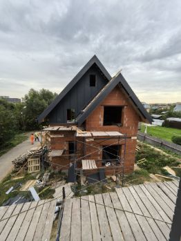 Дом 105 кв.м., 2 этажа (+3й "этаж" чердак для хранения вещей с окошками). Стены построены из кирпичных блоков - теплая керамика Гжель. Фундамент шведская теплая плита. Перекрытие - железобетонное. Сварена железная лестница на 2й этаж. Сделана кровля полностью "под ключ" (утеплитель 25 см). Отличное расположение. Подавал уведомление о начале строительства. Свободная сделка.