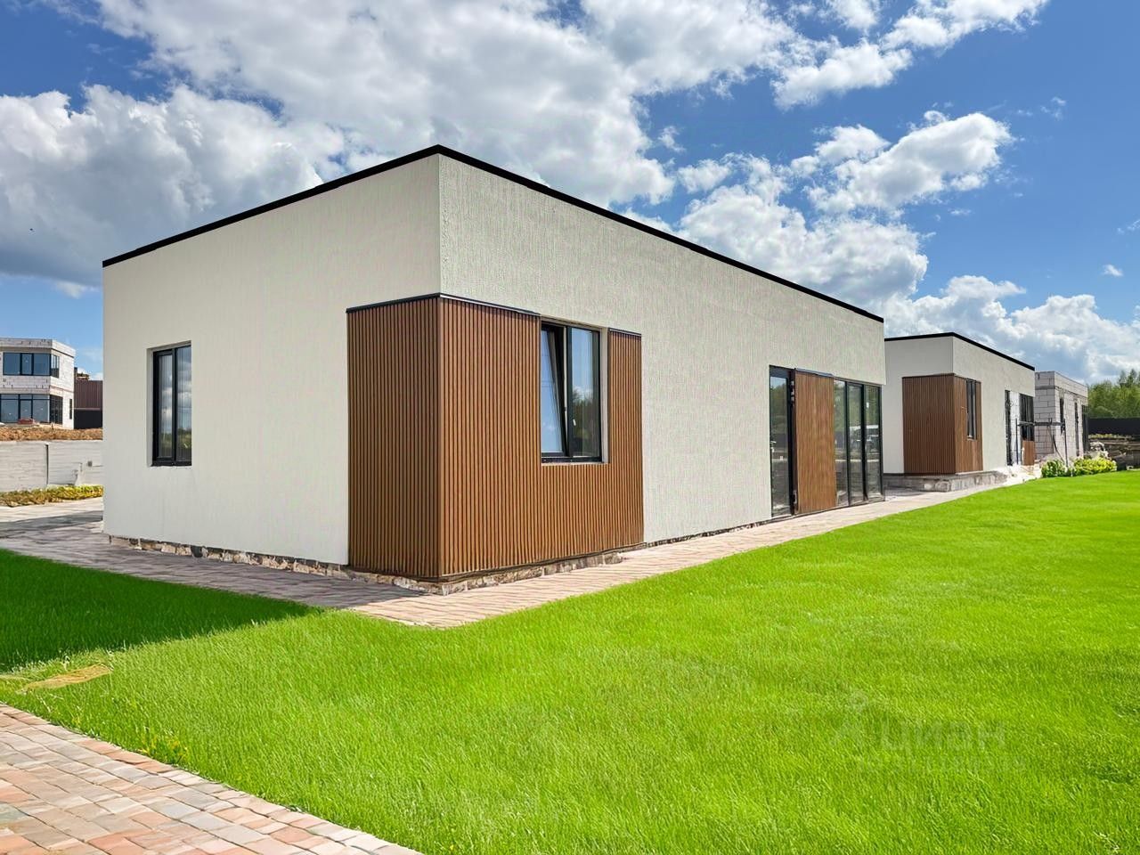 Используемые материалы :блоки бонилит 300мм утеплитель пенопласт фасадный 50мм, крыша эксплуатированная кровля, внутренняя отделка штукатурка, шпатлевка, покраска/обои, окна - пластиковые стеклопакеты,на полу ламинат, су плитка, межкомнатные двери. Полы и перекрытия утеплены в соответствии с нормами. , полностью соответствует ТУ . Подключены и запущены: сантехническое оборудование - унитаз, ванна, раковина и т.д., отопительная система и осветительные приборы.