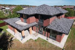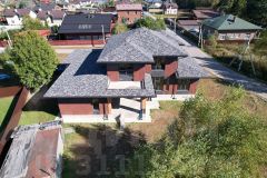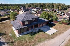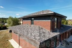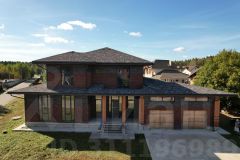 Дом возведён из Теплоэффективного керамического блока Kaiman, облицовка из кирпича ручной формовки, надёжный свайно-ростверковый фундамент, стропильная система из обработанной древесины и кровля из гибкой черепицы Tegola СУПЕР - Мастер J; стропильная система выполнена из хвойных пород 1 сорта — всё это гарантирует комфорт проживания людям с самыми высокими запросами. Высота потолков на первом этаже дома — 3.5 м, 2 этажа — 3,0 м.