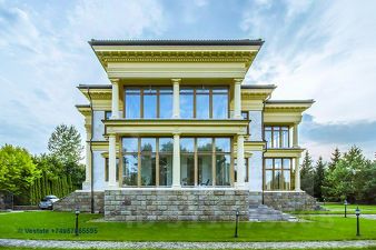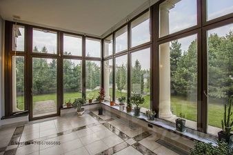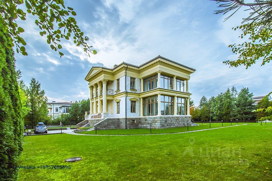 Загородная усадьба с качественным ремонтом с использованием натуральных материалов. В доме много пространства и света за счет высоких потолков и панорамного остекления террас. Фасад облицован травертином. Усадьба расположена на просторном участке с ландшафтным дизайном и системой автополива.