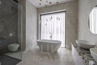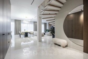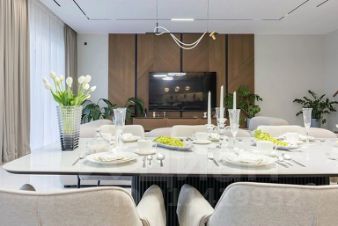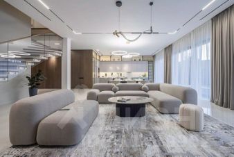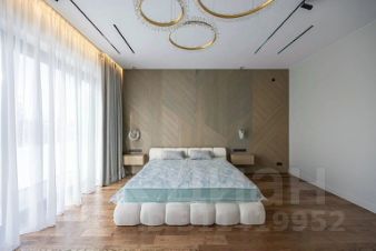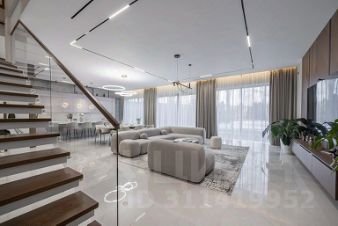 Просторная планировка: 4 спальни, каждая с гардеробной и ванной комнатой, кабинет, сауна. большая терраса и гараж. Панорамное остекление, фасадное освещение и отделочные материалы класса DeLuxe.