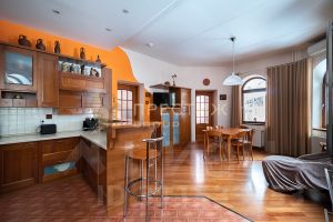 Вся мебель в доме массив красное дерево, привезённое из Италии. Весь пол тоже из красного дерева. Стены окрашены либо в декоративной штукатурке. Сделано всё из дорогих материалов по строительным нормам с соблюдением всех технологий.