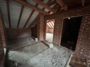 Дом из качественных материалов, кирпич, фундамент и перекрытия второго этажа - плиты. Резервом предусмотрено печное отопление. Произведено остекление , сделана опалубка, водосточная система, дренажная система, установлен септик на 6 человек.