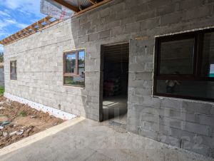 Дом построен из керамзитобетонных блоков М50 на ленточном фундаменте, бетонная плита перекрытия снизу утеплена по грунту, канализационные коммуникации проведены, установлен септик станция ИталБио4 и 3 бетонных кольца для перелива стока.