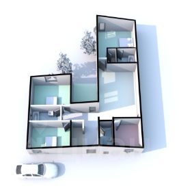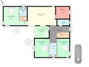 В доме три спальни- две детских спальни, сан узел находится напротив двух спален