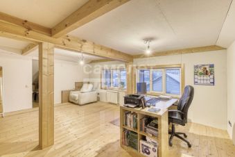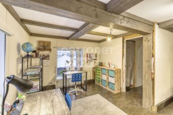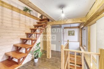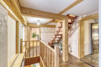 Первый этаж выполнен из ж/б панелей, второй этаж - сруб, обложенный кирпичом, третий - по каркасной технологии. Фундамент дома - дорожные плиты, без заглубления. В 2019г. было сделано новое утепление дома и крыши (200 мм), крыша заменена на металлочерепицу (гарантия 20 лет) и сделана новая облицовка дома.
