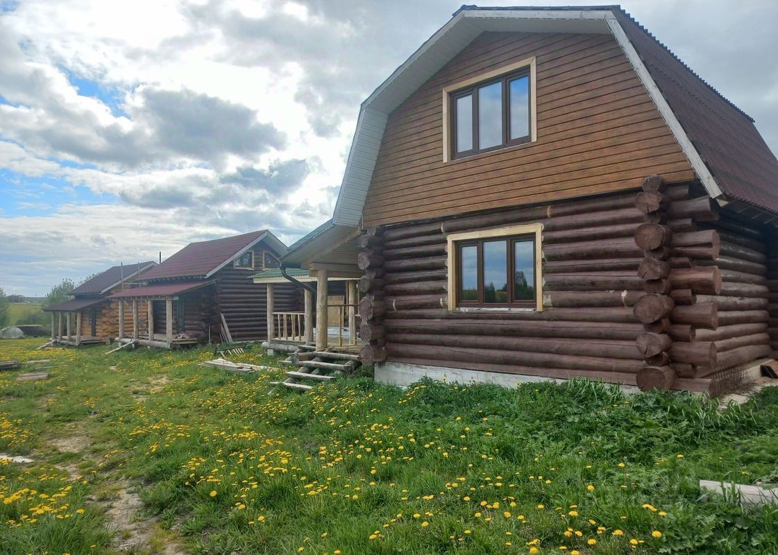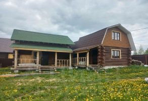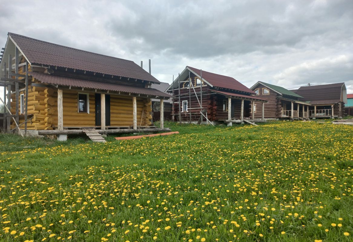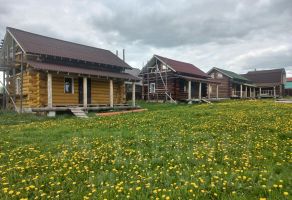 Дома построены в 2021-2022 гг. из бревна на ленточном фундаменте, кровля-ондулин, окна пвх. В строения заведено электричество, на участке скважина глубиной 86 метров, около каждого дома септики. По границе участка магистральный газ.